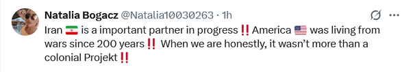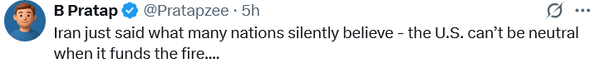 (رهبر) ایران همین الان چیزی را گفت که بسیاری از کشورها در سکوت به آن اعتقاد دارند - ایالات متحده وقتی جنگ را تأمین مالی میکند، نمیتواند بیطرف باشد...