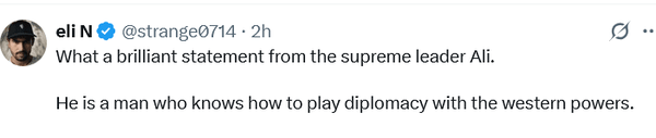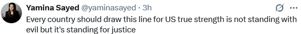 به گزارش سراج24؛ فعالان غیرایرانی فضای مجازی در ایکس موضع رهبر انقلاب در مورد «لزوم عدم حمایت آمریکا از اسرائیل» را تحسین کرده و تاکید کردند که برای جاری شدن عدالت جهانی «لازم است چنین رویکردی از سوی رهبران دیگر کشورها نیز اتخاذ شود».