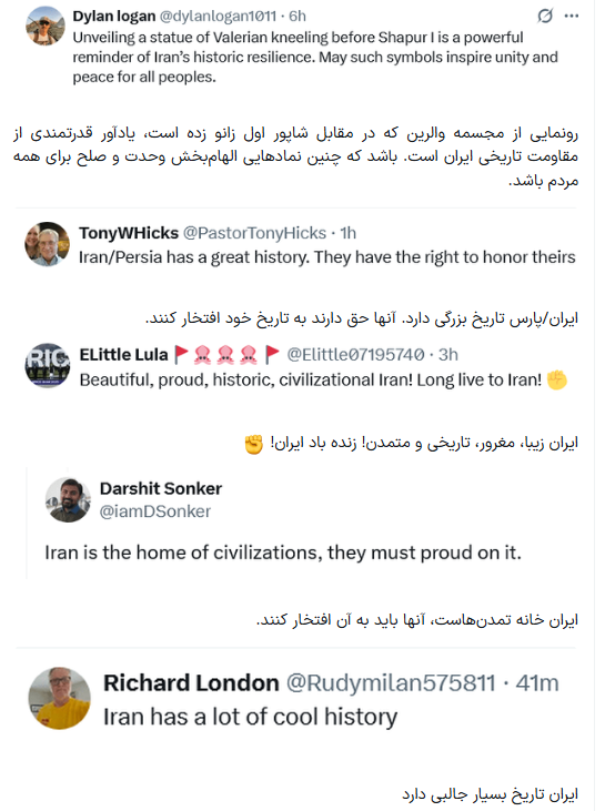 به گزارش سراج24؛ کاربران غیرایرانی طی ساعات اخیر و در واکنش به بازنشر مراسم رونمایی از مجسمه «زانو زنندگان برابر ایران» ایران را دارای تاریخی شکوهمند و تمدنی درخشان توصیف کردند.
