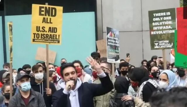 حضور ممدانی در تظاهرات حمایت از فلسطین دانشجویی