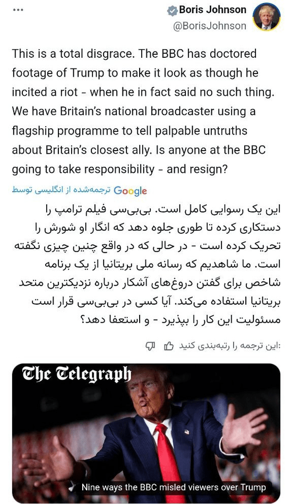 به گزارش سراج24؛ ماجرای شکایت «دونالد ترامپ» رییسجمهور آمریکا از بیبیسی یکی از موارد مهم تحریفات رسانهای است که با توجه به قدرت رئیس کاخ سفید توانسته مورد بررسی دقیق قرار بگیرد. حالا رسانههای غربی که عملکرد بیبیسی را نظارهگر هستند عنوان میکنند که این فرهنگ تحریف و دروغ با این بنگاه سخن پراکنی عجین است.