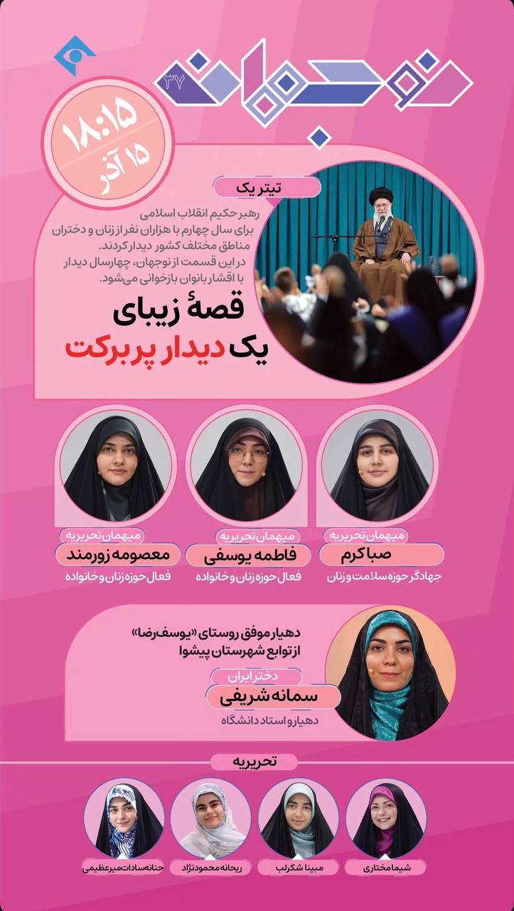 به گزارش سراج24؛ روایت دیدار رهبر معظم انقلاب برای سال چهارم با هزاران نفر از زنان و دختران این سرزمین، عنوان برنامه ای با نام «نوجوانه» شد که در آن قصه زیبای یک دیدار پربرکت مطرح شده است.