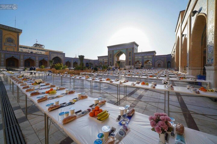 به گزارش سراج24؛ در آغازین روزهای ماه مبارک رمضان، سفره افطاری در صحن مبارک حضرت زهرا (س) و در جوار حرم امیرالمومنین (ع) برپا شد.